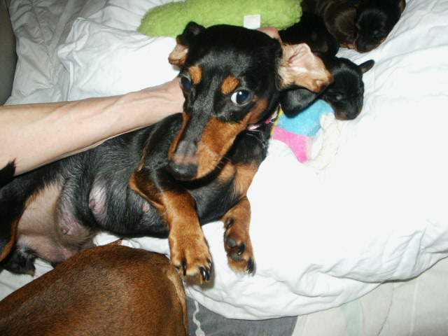 Hi up there!! We bad!! Our last Smooth haired mini dachshunds